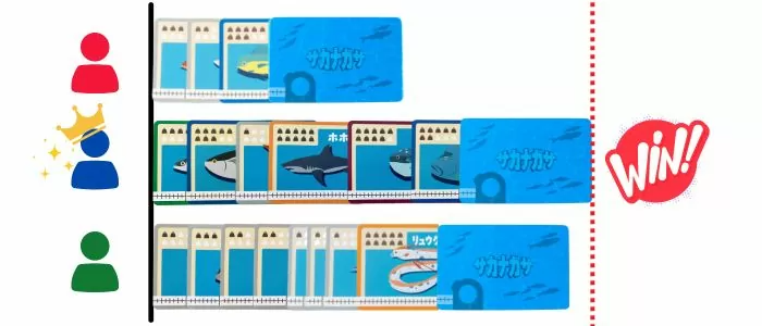誰かが8匹以上の魚を釣ったらゲーム終了です。