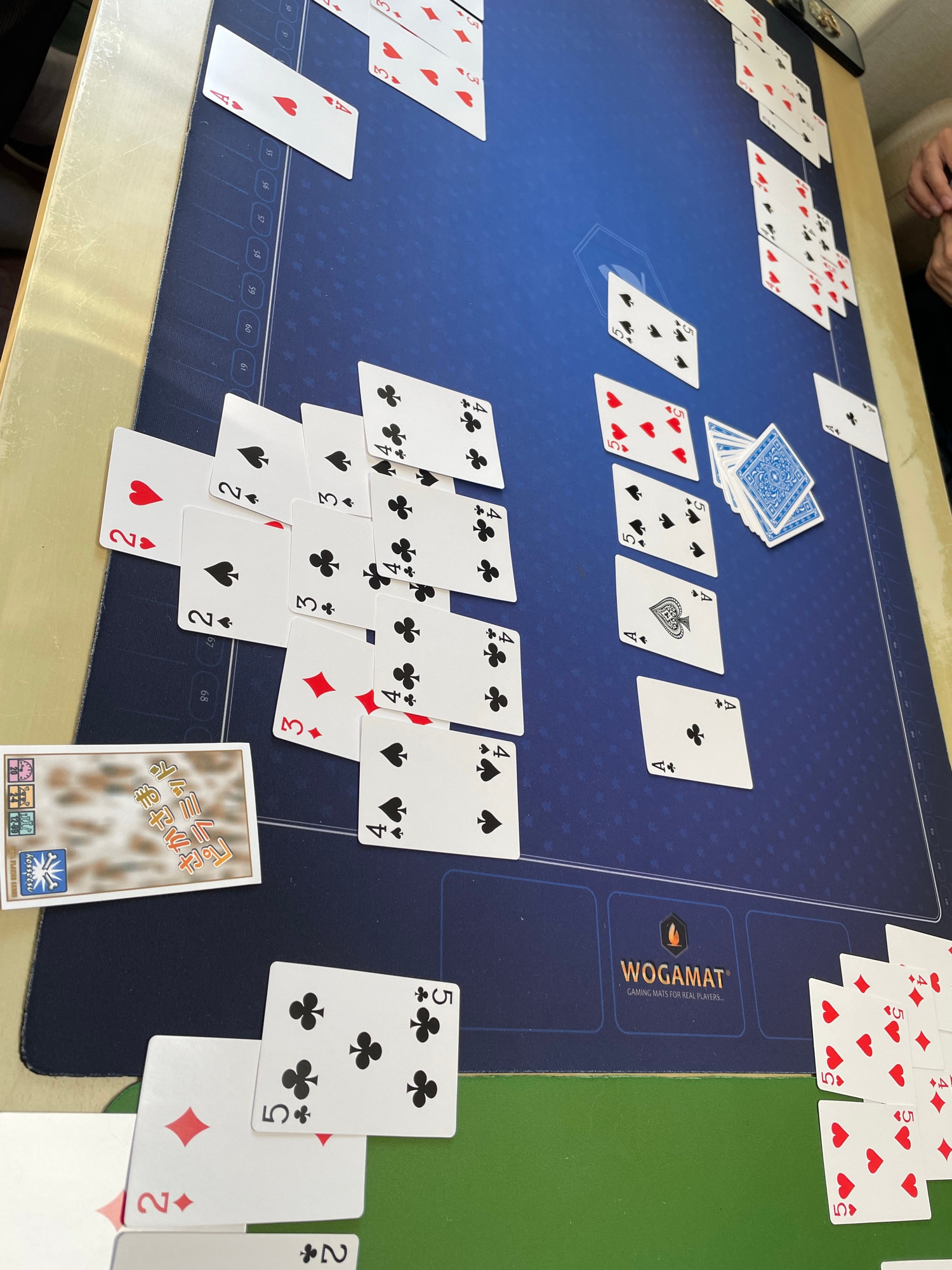 基本的に各プレイヤーは、自分の前に3箇所場所を持っていて、そこにカードを逆ピラミッドに配置していきます。
