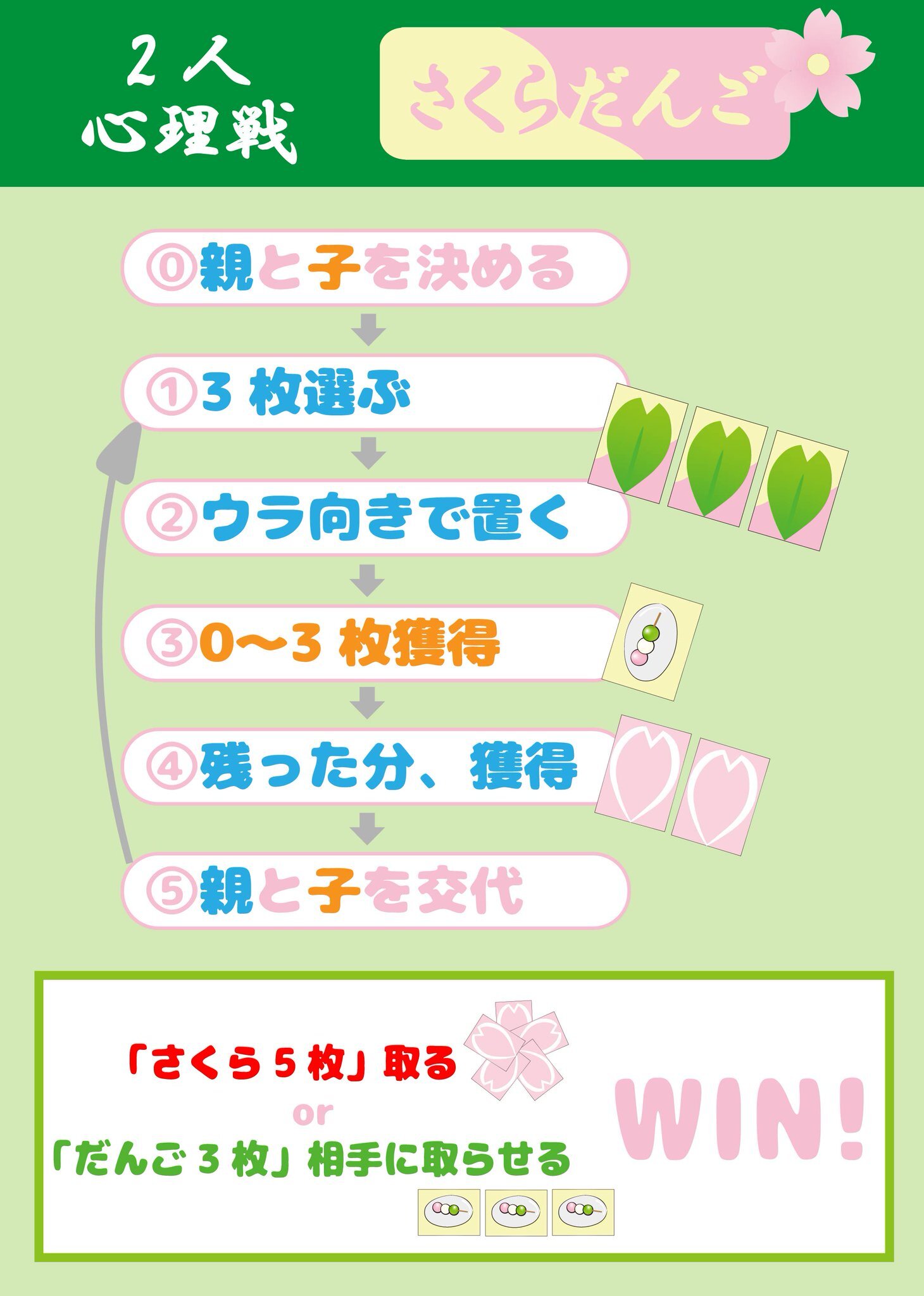 桜5枚取るか、だんごを3枚取らせたら勝ちです!