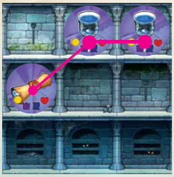 ⚫ 続行:ヒーローフィギュアを1つ下のフロアに移動し、チップを引き続けます。バッグにチップが少なくとも1つ残っている場合にのみ続行できます。