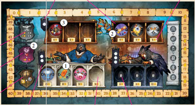 3. ゴールドトークンとツールトークンをマーケットボードの横に置きます。
