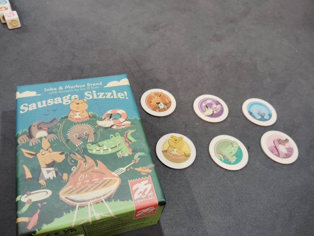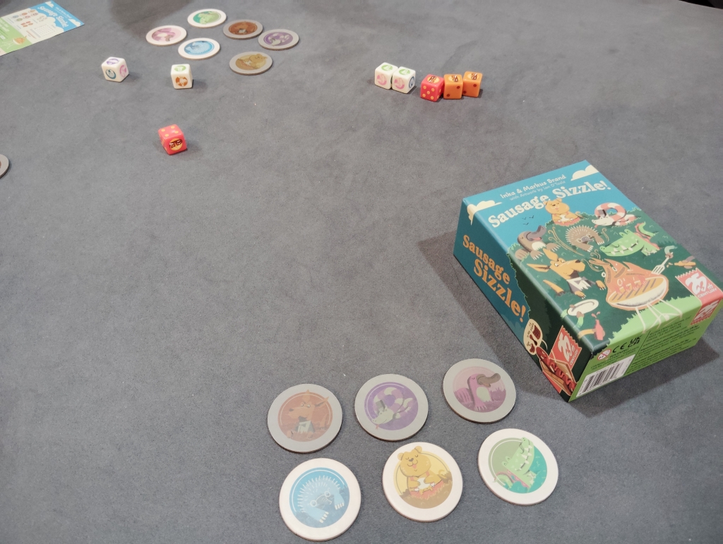 揃えたダイスの出目×動物の出目が得点になり、6回の得点合計で競うSausage Sizzle!