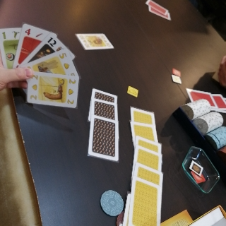 色の強弱があるので、自分がしっかりカードを集める以外に他プレイヤーに欲しそうな(欲しくない)カードをあげるのもやさしさ。辛いだけでいいわけなく、甘さも欲しいトリテ。