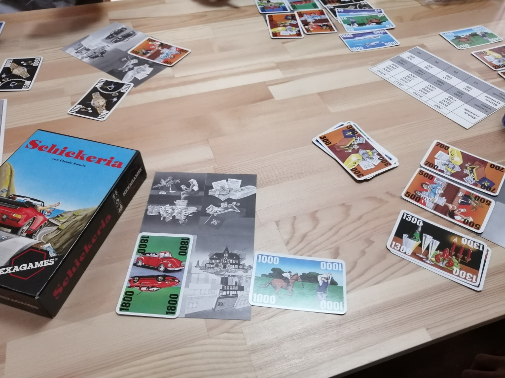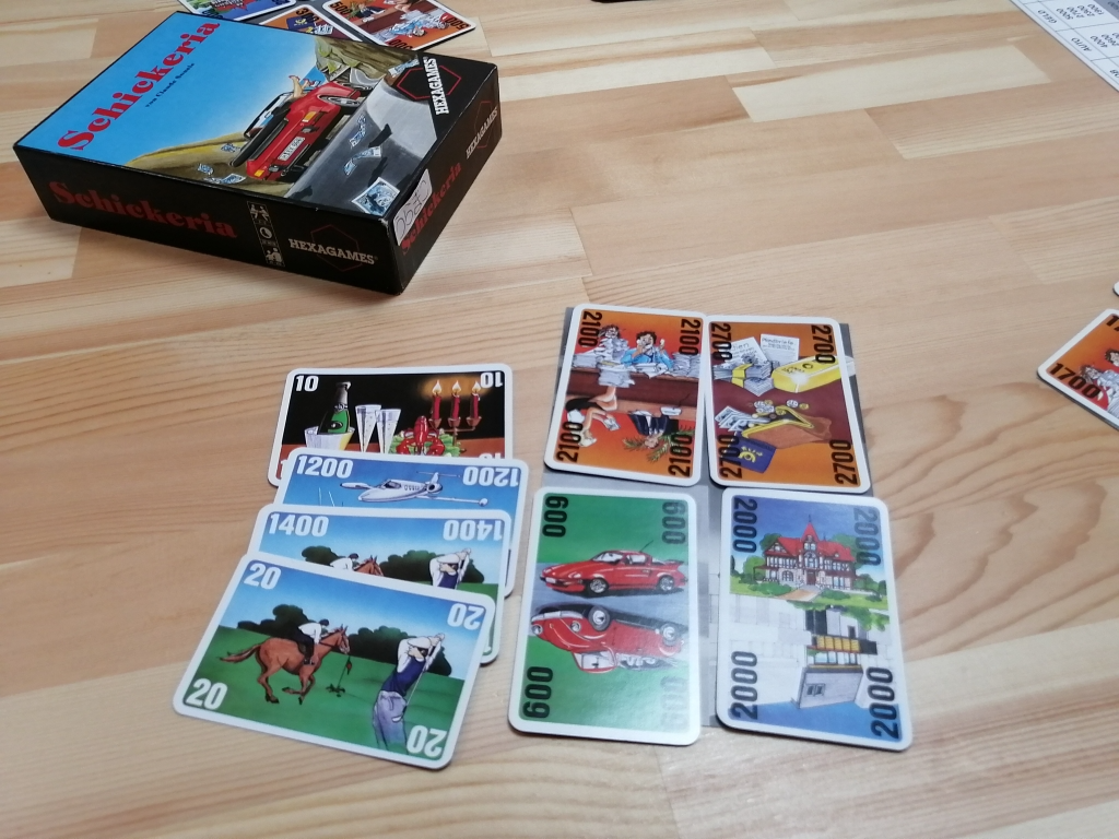 数字は10〜6000まであり、2番目に高い数字をプレイしたらトリックを獲得。獲得した仕事、富、車、家を自分の個人ボードに配置できたらラウンドから抜けて、上流階級の仲間入りで数字合計が得点になります。