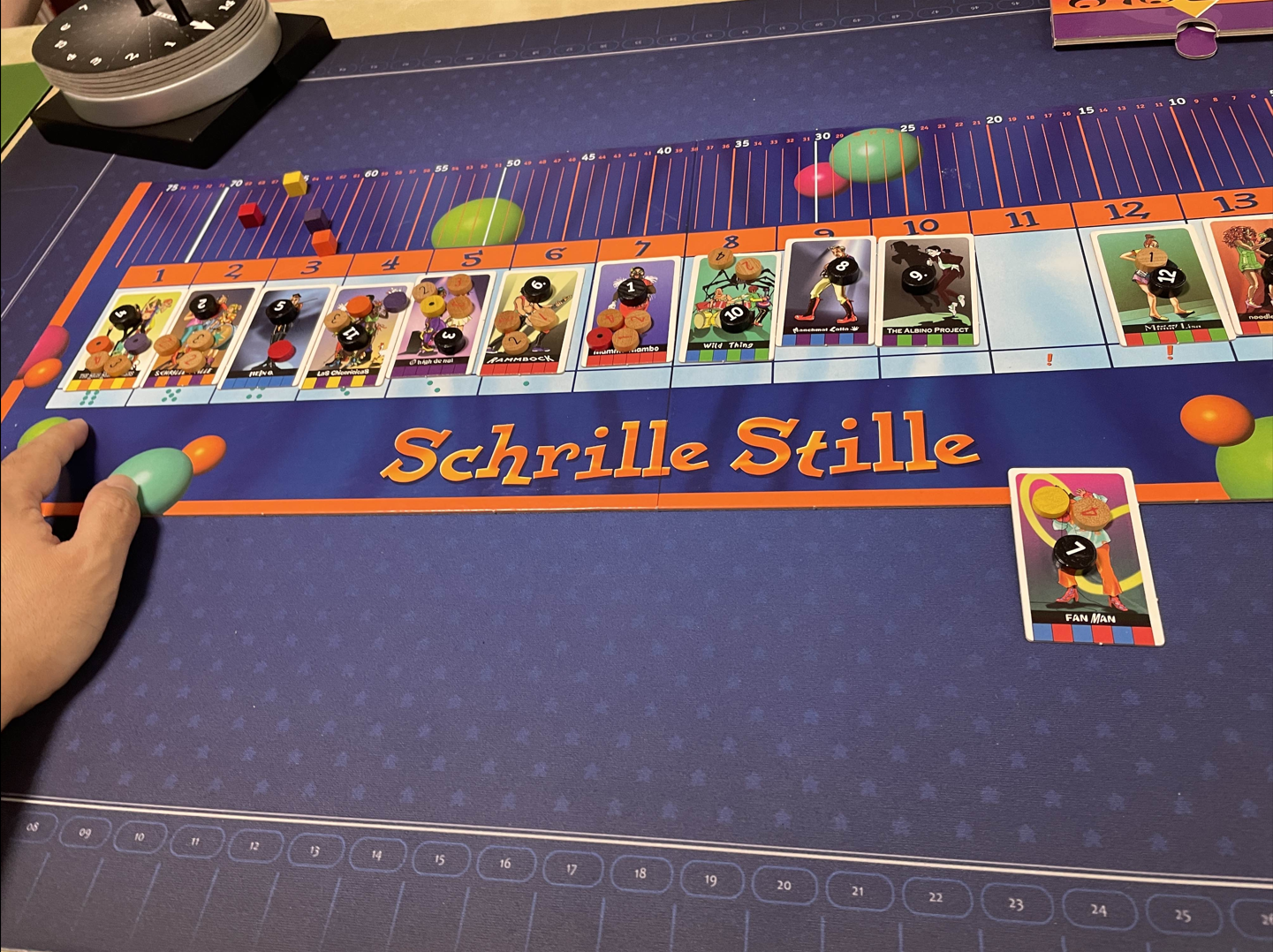 ビットとは、1~14位の歌手に5つの影響チップ(2枚は返却)、自分の2枚のチップ、合計7枚をこっそり置くことを意味します。7箇所に置かれて、残りの7箇所には何も置きません。