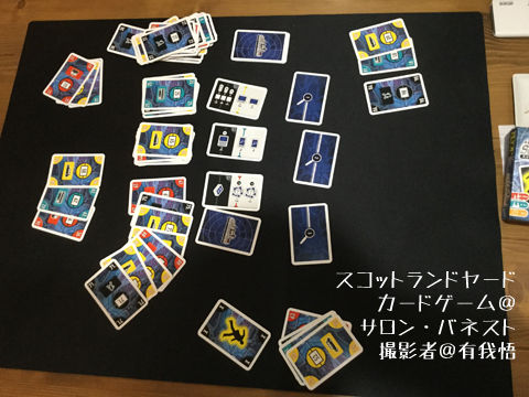 実際に遊んでみたのですが、全員初見のためXがあまりXの能力を使わずに負けてしまいましたが、それでも山札がかなり減っていたので、バランス的にはXが必ずしも不利というわけでもなさそうです。また、なるべくミスターX側は黒カードを温存してがんがん能力を使っていくプレイにした方が強そうな気がしました。