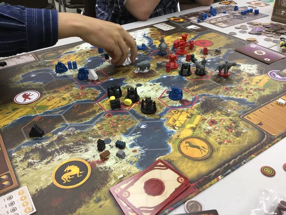 結果は 赤 が63点で勝利。 黒 の私は43点で,2位でした。黒のトンネル戦略はそこそこワークすることがわかりました。今回さとったことは,戦闘国家は民心ゼロで終わっていいですね。中途半端に民心がたまって迷いが出たため,赤へのプレッシャーをちゃんとかけられず,独走を許してしまいました。 しかし赤 の勝ち点のうち,コインが25ほどありました。スキルでコイン稼ぎまくる赤をとう止めるか。。もはや全面戦争して資源を奪うしかないのか。。