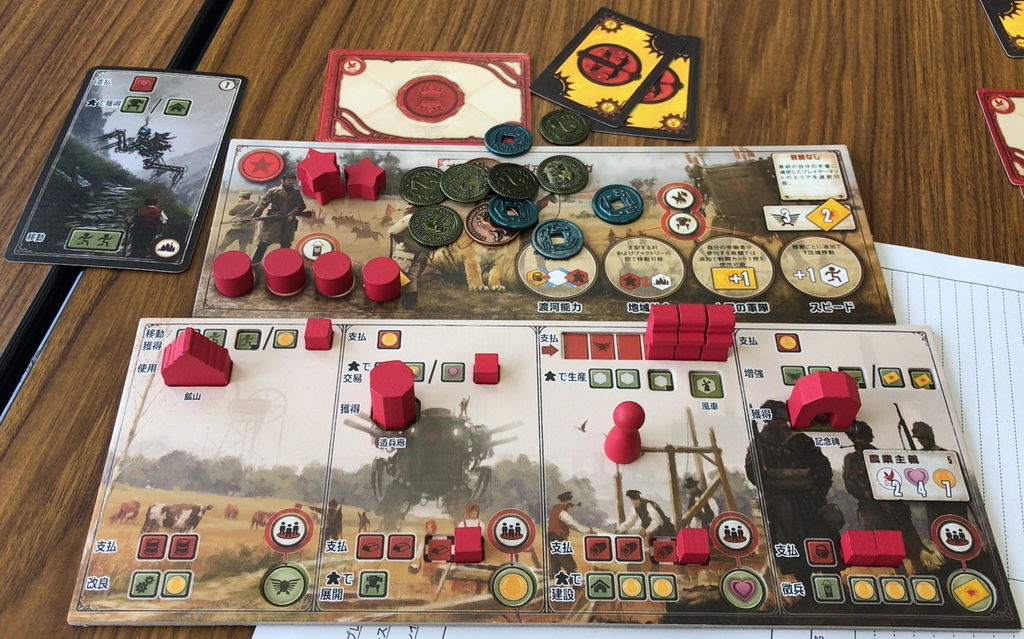 一見、戦争主体の戦略ボードゲームのように見えますが、実際はメック、労働者、建物、徴兵などの最大開放によるスター獲得が目的となっており、戦闘は行わなくてもよいのがこのゲームの特徴でもあります。