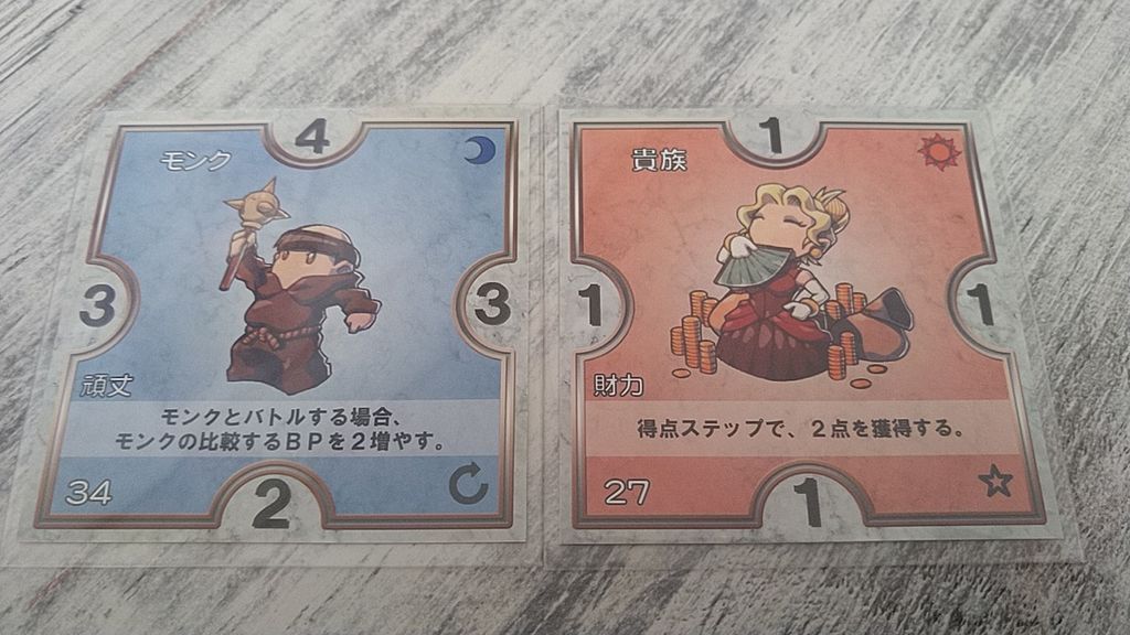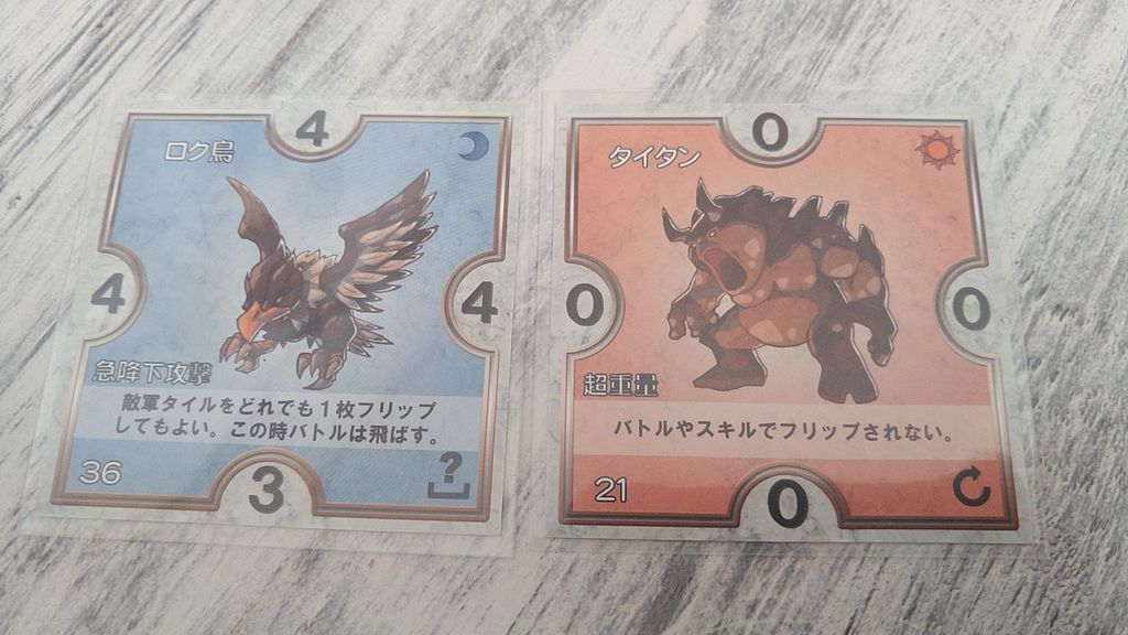 基本は出したタイルのキャラの四方にある数字を比較してバトルしていきます。交互に出していく形式なので、返し返されの繰り返しですが隣接した面を返すことが前提になるので、置き方やスキルの使い方が重要になってきます。
