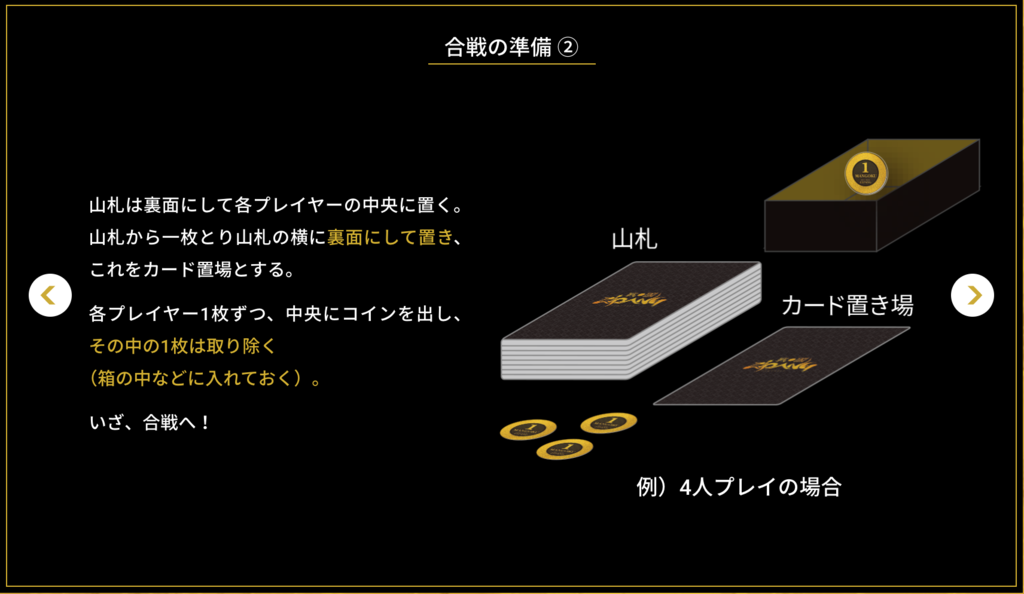 - 「キャラクターカード」の山札から各プレイヤーに2枚づつ配ります。