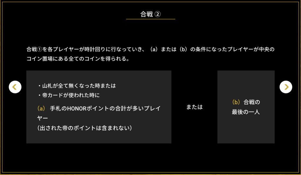 (戦闘については別途記述します) - 名誉ポイント:ラウンド終了時にこの数字を比べます。