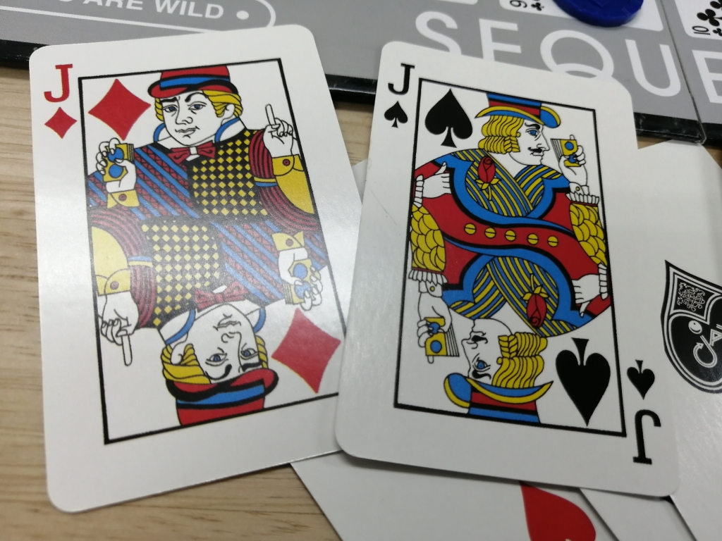 両目のジャックはオールマイティ(ジョーカー)、片目のジャックは相手チップを1枚取り除きます。