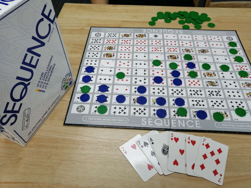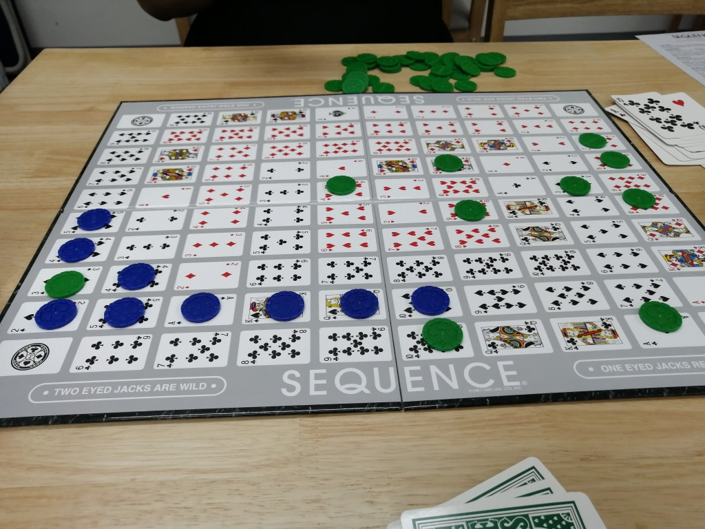 2人なんで邪魔できないこともありますが、5枚連続チップを2つなんで、いい勝負になります。