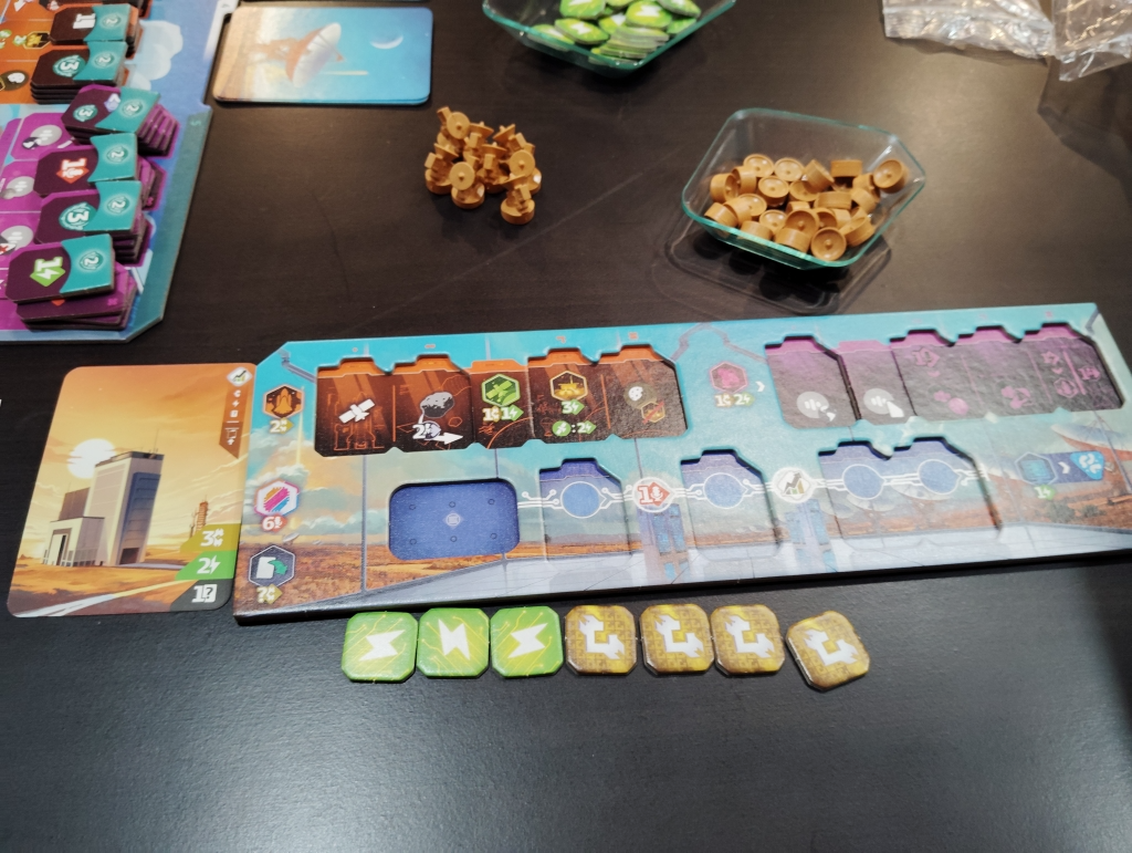 資源自体はラウンド終了時の生産力も上げておくと少しは良くなりますが、1ラウンドさ3〜4手番ぐらいしたら資源カツカツなので、5ラウンドはわりかし早いです(箱表記は1人×40分)。