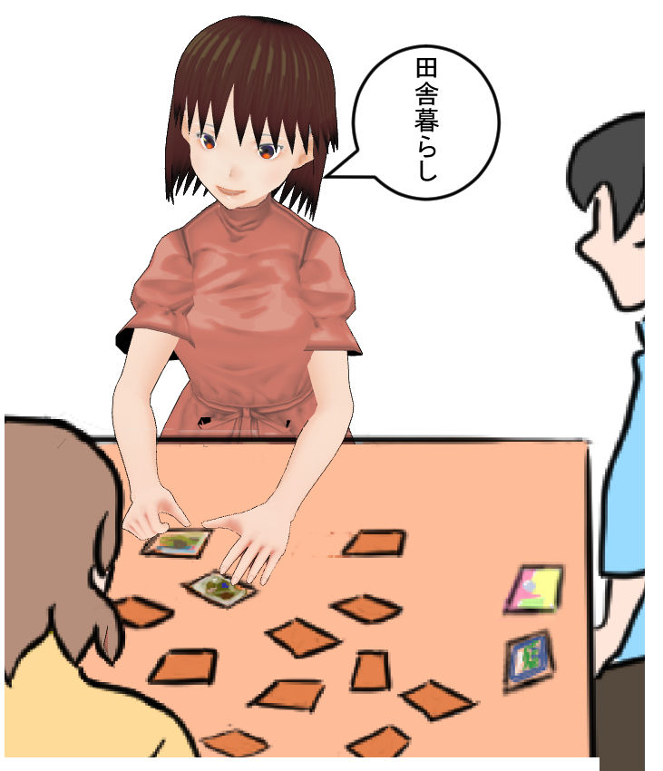 ④他の人が全員タイトルに納得したら開いた2枚を手元に取ります。