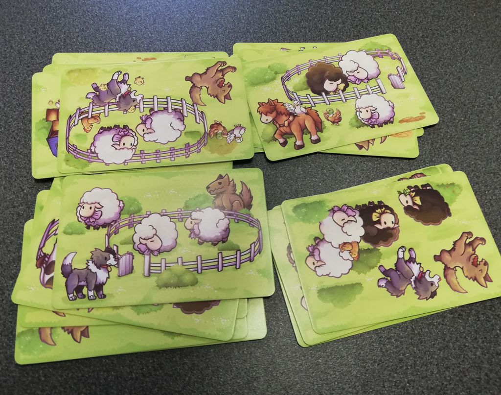 ルールは4枚のカードの羊を数えるだけ。ただし、狼は羊を食べ、牧羊犬は同じカードの中の狼を時計回りに追い出し、牧場主は同じカード内の狼を退治する。しかし、閉まった柵の中にいるキャラは効果の範囲外になる。