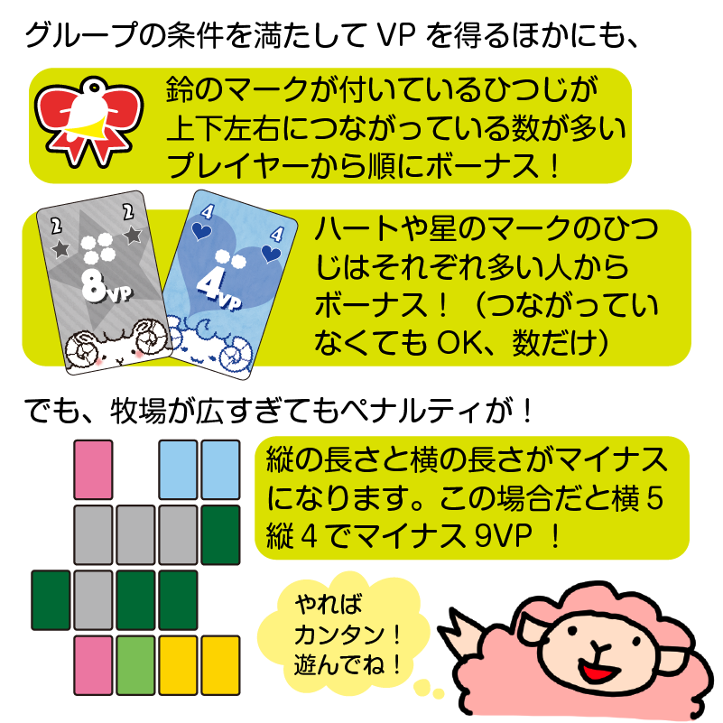 ・星のマークのひつじがいちばん多い人(つながってなくてOK)からボーナス