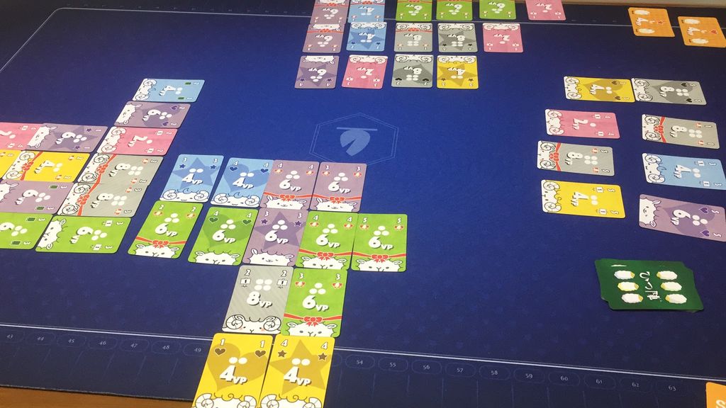 羊のカードを自分の前に並べて得点を集めていきます。配置ルールに縛りがあって、思ったように置けないこともしばしば発生しますが、基本的に自分だけの場があるのでカードをうまく集められるかがポイントです。