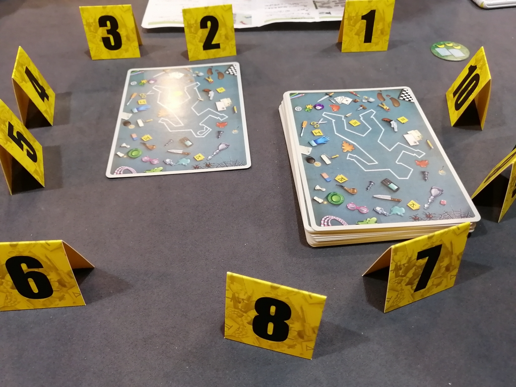 2枚の現場カードから違和感を見つけて、それが合計で何個あるかを当てる。ぴったりなら3点、ニアピンなら1~2点獲得。確かな観察眼も必要ですが、直感で事件解決するのも悪くないシャールック。