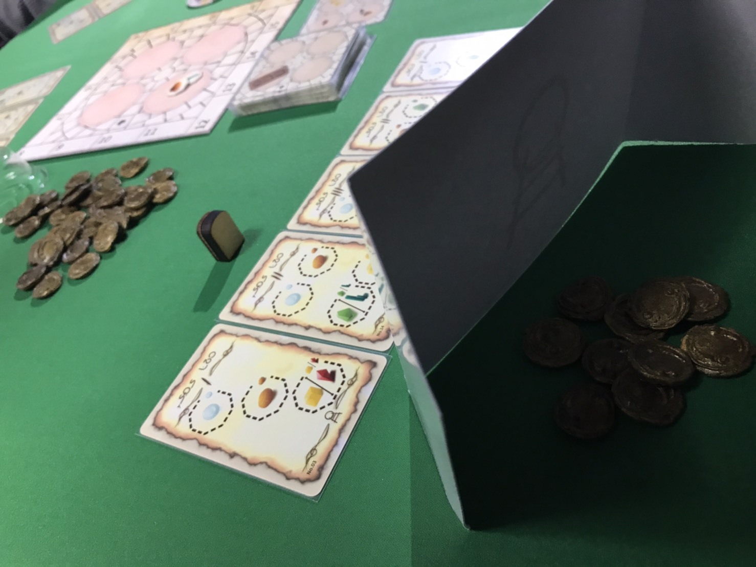 競りの楽しさが十二分に味わえるゲーム性とそこに詰め込まれた世界観が秀逸。手作りのオリジナルコインも凄くカッコイイんですが、そのため生産数もかなり制限されているみたいなので予約した方が良さそう。イベント限定で「宝石トークン」も出るらしいので、それで遊んだらより楽しそうです♪