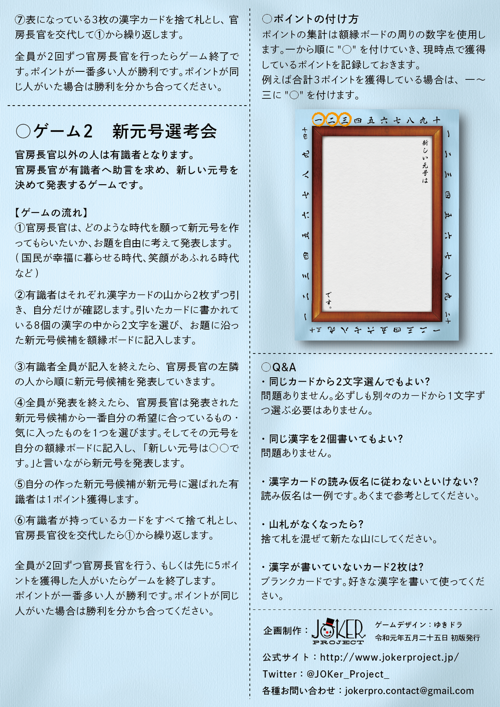 新しい元号は○○です。JOKer Projectさんのルール/インスト
