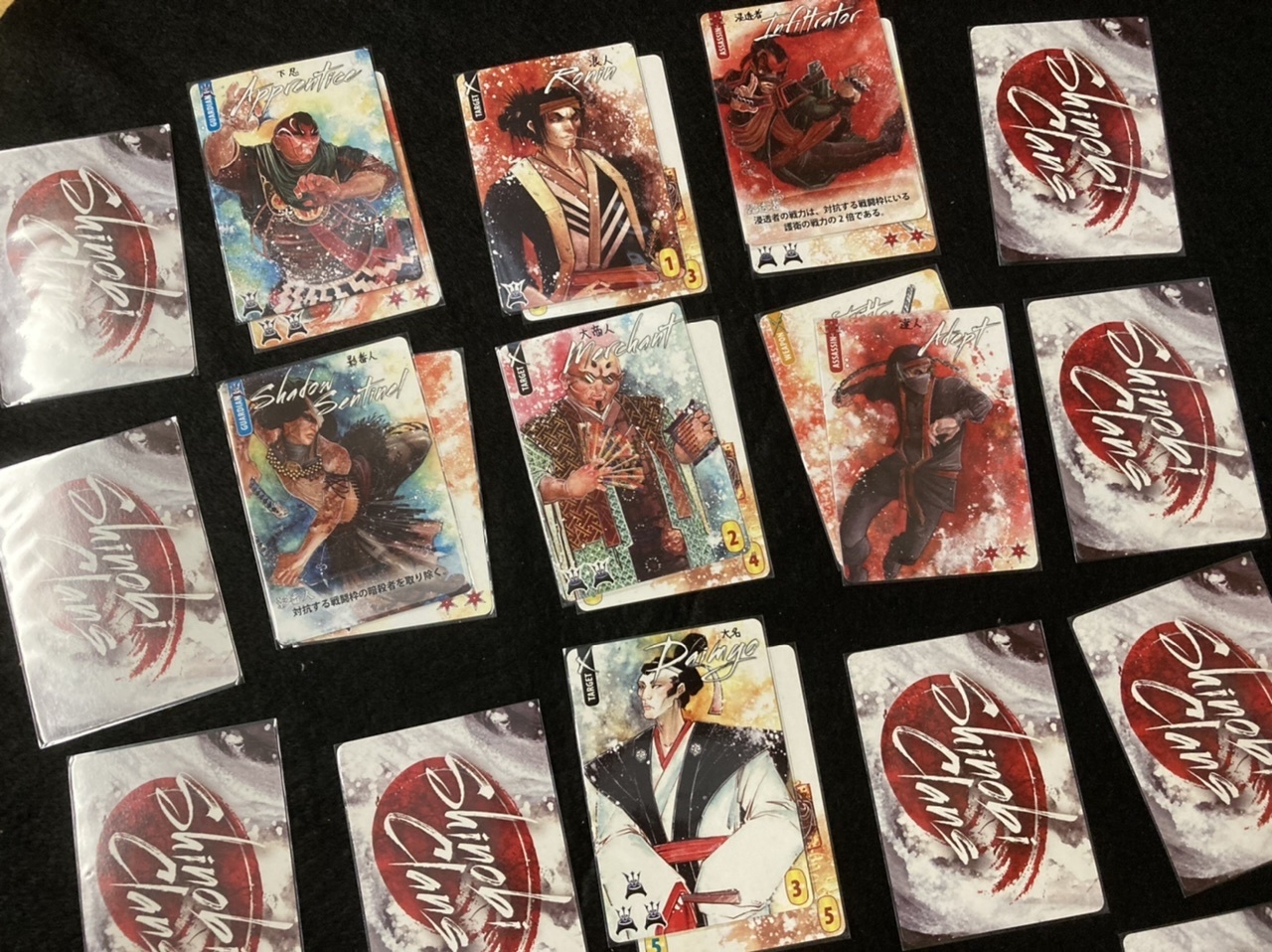 各勢力は、順番に手札の中から選んで「上忍の暗殺者」や「達人の護衛」、または「手裏剣」や「忍者刀」などの武器カードを伏せたまま各要人に1枚ずつ付けていきます。