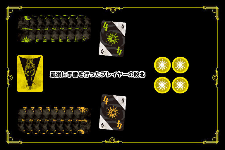 差が同じだった場合、最後のアクションを行なったプレイヤーが敗北となる。