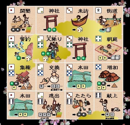 この15点稼ぐのに必要な手数は、[水田][献上]で珠・鉄を得て、[集権]で