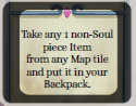 魂の欠片アイテムの場合、邪悪な魔術師に1ダメージを与え(つまり、1ポイントを獲得します)、スコアトラック上でポイントトラッカーを適宜動かします。バックパックにはいくつでもアイテムを入れることができます。