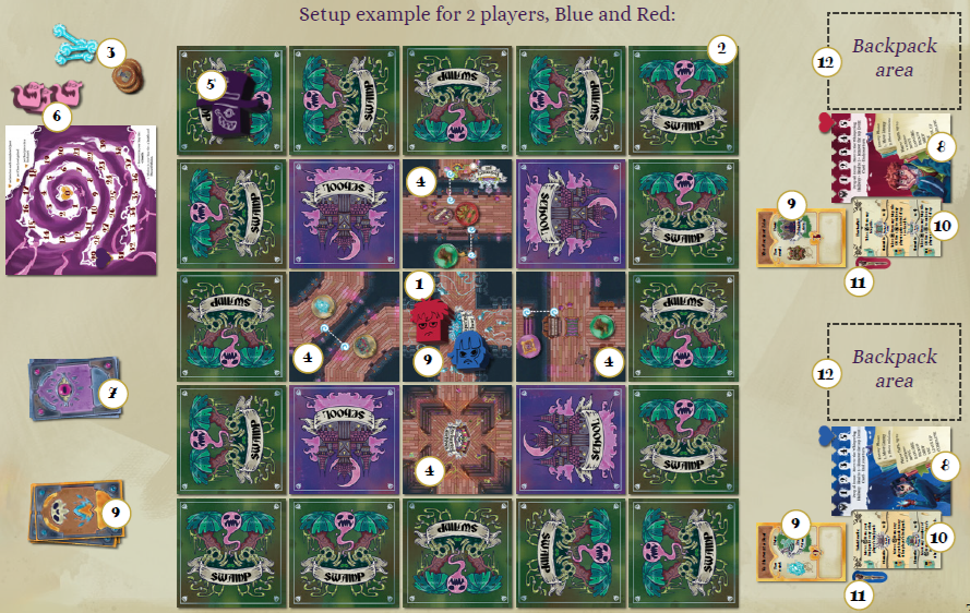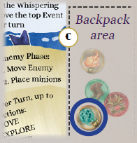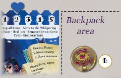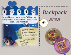 12. 各プレイヤーはプレイヤーボードの右側の空きスペースを残します。これは、ゲーム中に収集したアイテムを保管する個人のバックパックエリアになります。