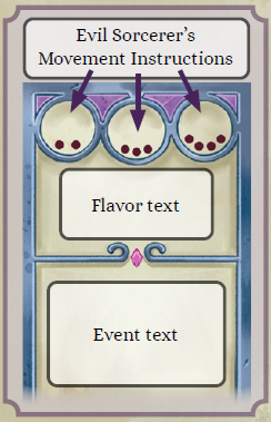 一部のイベントでは、邪悪な魔術師が移動したり、ミニオンが配置されたりすることに注意してください。これが発生した場合、プレイヤーは前述のようにただちにそれらの影響を受けます。