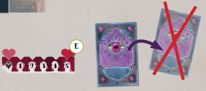 最後に、赤は5に回復し(E)、ストーリーデッキの一番上のカードを捨てます。 |