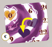 それを示すために、赤はプレイヤーボード上で体力トラッカーを0に向かって1スペース移動します。 |