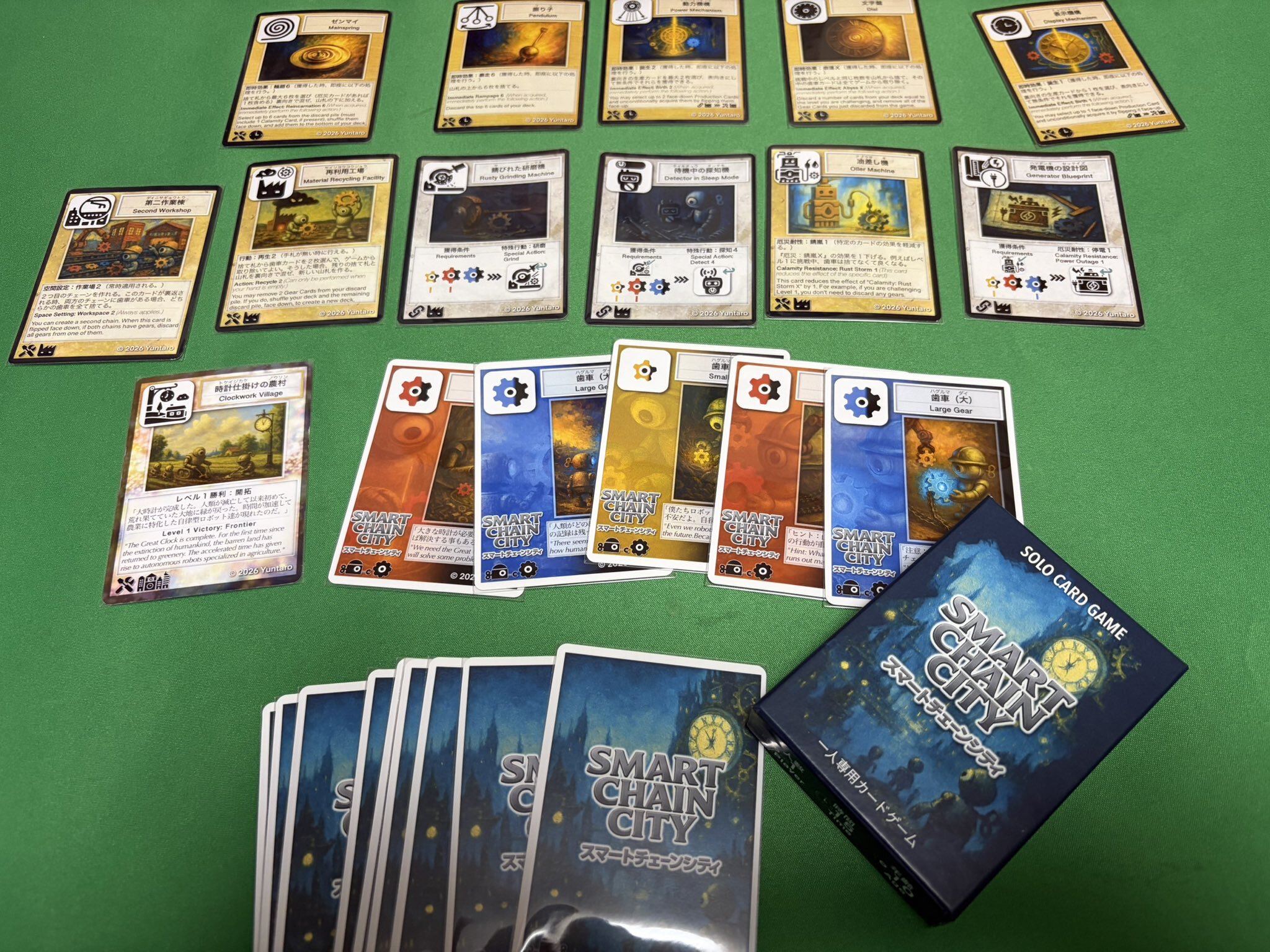 途中で遭遇する災厄にしても地味にやっかいなものがあるし、3種類ある歯車にしても「次に同じカードは置けない」縛りがあるため、盤面と運を両方とも見ることが必要です。