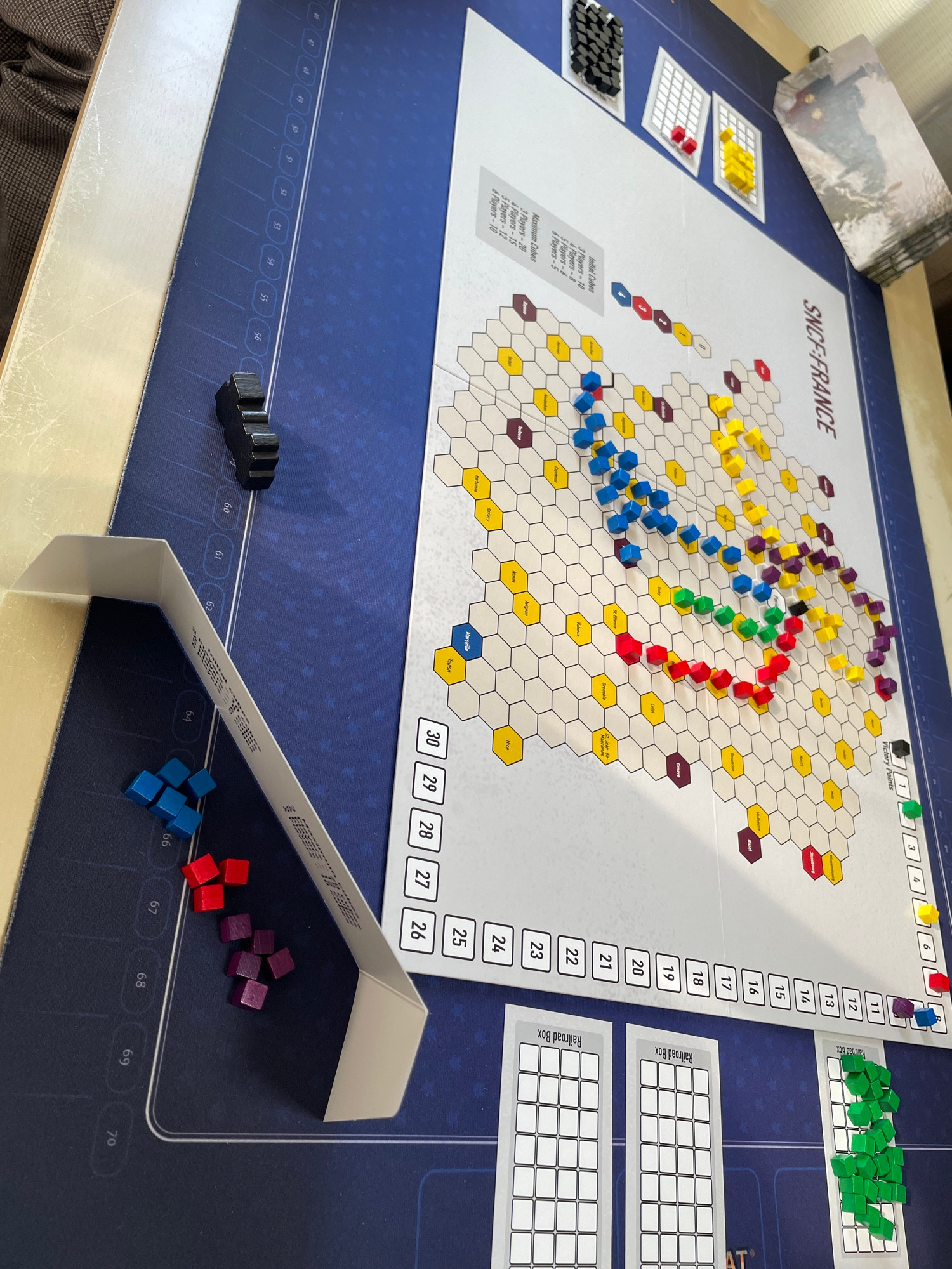 後は、5色のキューブが枯れるか、どれかの路線がマルセイユまでたどり着いたらゲームが終了します。