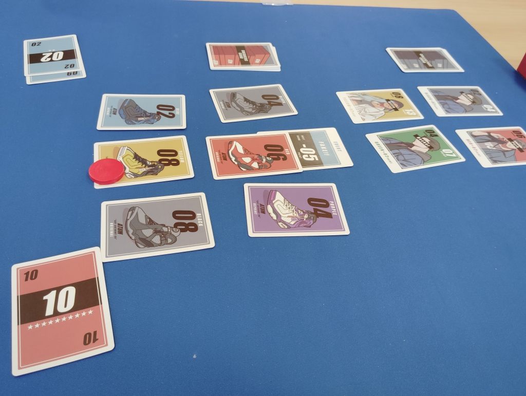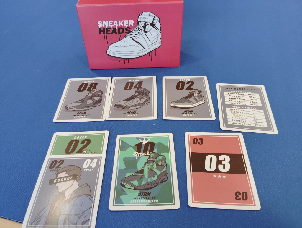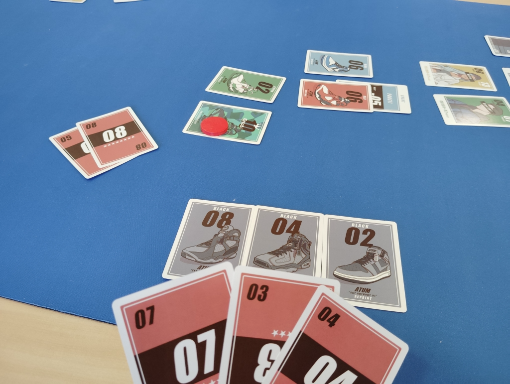 落札したプレイヤーの左隣のプレイヤーから、新たに入札するスニーカーを選んで競りを行うって流れを場にあるスニーカーが無くなるまでします。