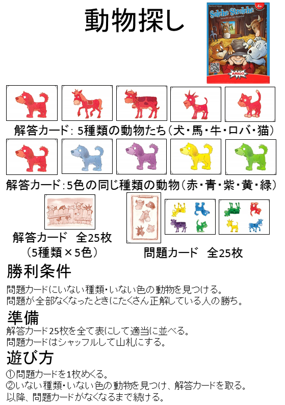 レビュー動物さがしおススメ度:★★★☆☆カードに描かれているものは、5種類の動物:犬・猫...7年以上前の投稿