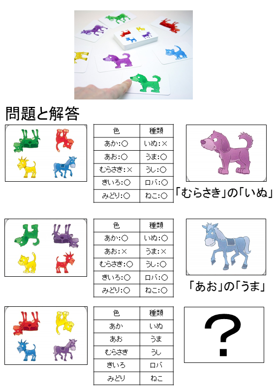 問題カードにいない種類・いない色の動物を見つける。