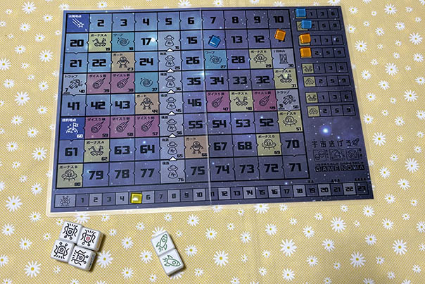 黒の目が出ると振り直しは出来ず、その個数だけ宇宙人コマが進む。