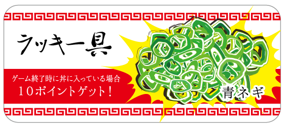 ゲーム終了時にラッキー具が丼に入っている場合、+10ポイントのボーナスポイントを貰えます。
