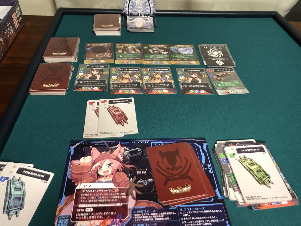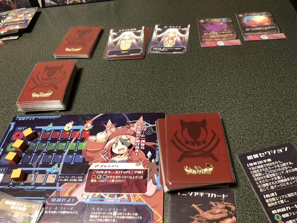 何度かプレイしていくとキャラクターによって結構難易度かわることが何となくわかります、アンは強い。あとどういう動きをすれば良いかがわかってくると段々と楽しくなってきます。プレイスペースはそろであれば麻雀マットで丁度収まるくらいで助かる。常にカードをスライドなどなど動かす必要があったりするのでプレイマットの類は必須です。