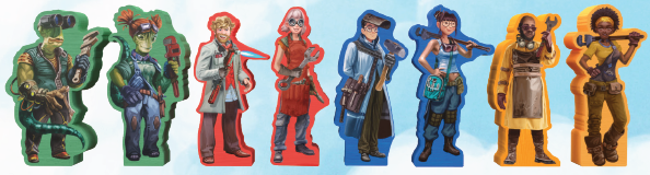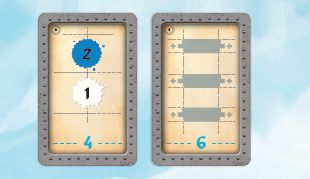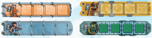 4枚の両面プレイヤーボード(4色): ジャンクヤードを訪れると、ここにジャンクタイルを集めます。 |