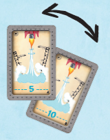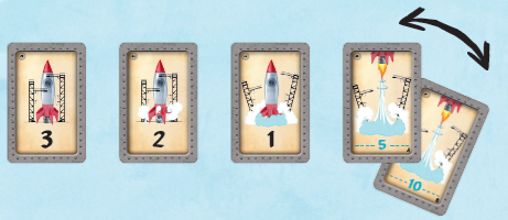 9. 最後(一番下)のカウントダウンカード(手順4から)をB面に裏返します(カード下部に5ポイントではなく10ポイントが表示されます)。 |
