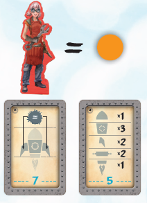 プレイヤーはその山から一番上のジャンクタイル1枚を取り出し、プレイヤーボードの空きスペースに置きます。1つのジャンクの山にはポーンが1つしか入れません。