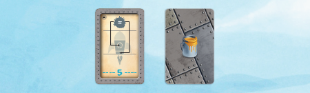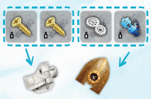 例:アガサはロケットパーツを作り、ジャンクを消費して金と白のコネクタを獲得したばかりです。これで彼女は2枚のデザインカードを達成することができます! |