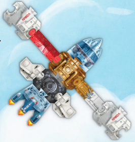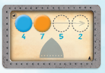 ロケットに白パーツが1つ、青パーツが2つあることで1枚のカードの条件を満たし、ロケットにコネクタが3つあることで別のカードの条件を満たします。 |