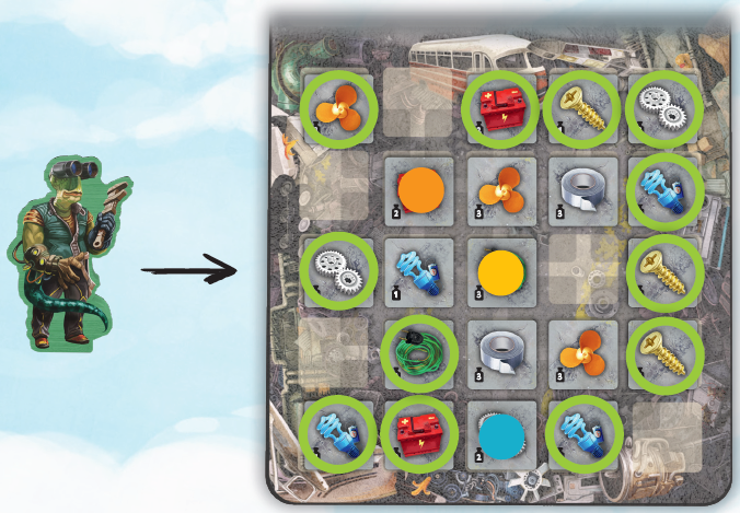 プレイヤーは、集めたすべてのジャンクを自分のプレイヤーボード上に配置する必要があります。
