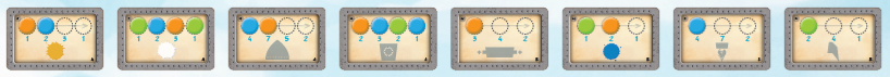 7. 基本デザインカードの代わりに上級デザインカードをシャッフルし、下記のように横1列に並べます: