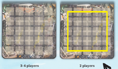 1. ジャンクヤードのプレイマットをテーブルの中央に置き、プレイヤー数に対応する面を上にします。 |