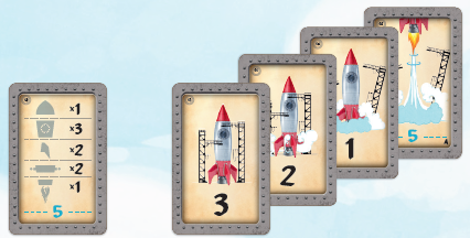 9枚の上級デザインカード: (上級バリアント用)これらにより、構造内のさまざまなロケットパーツの価値をまとめて決定できます。 |
